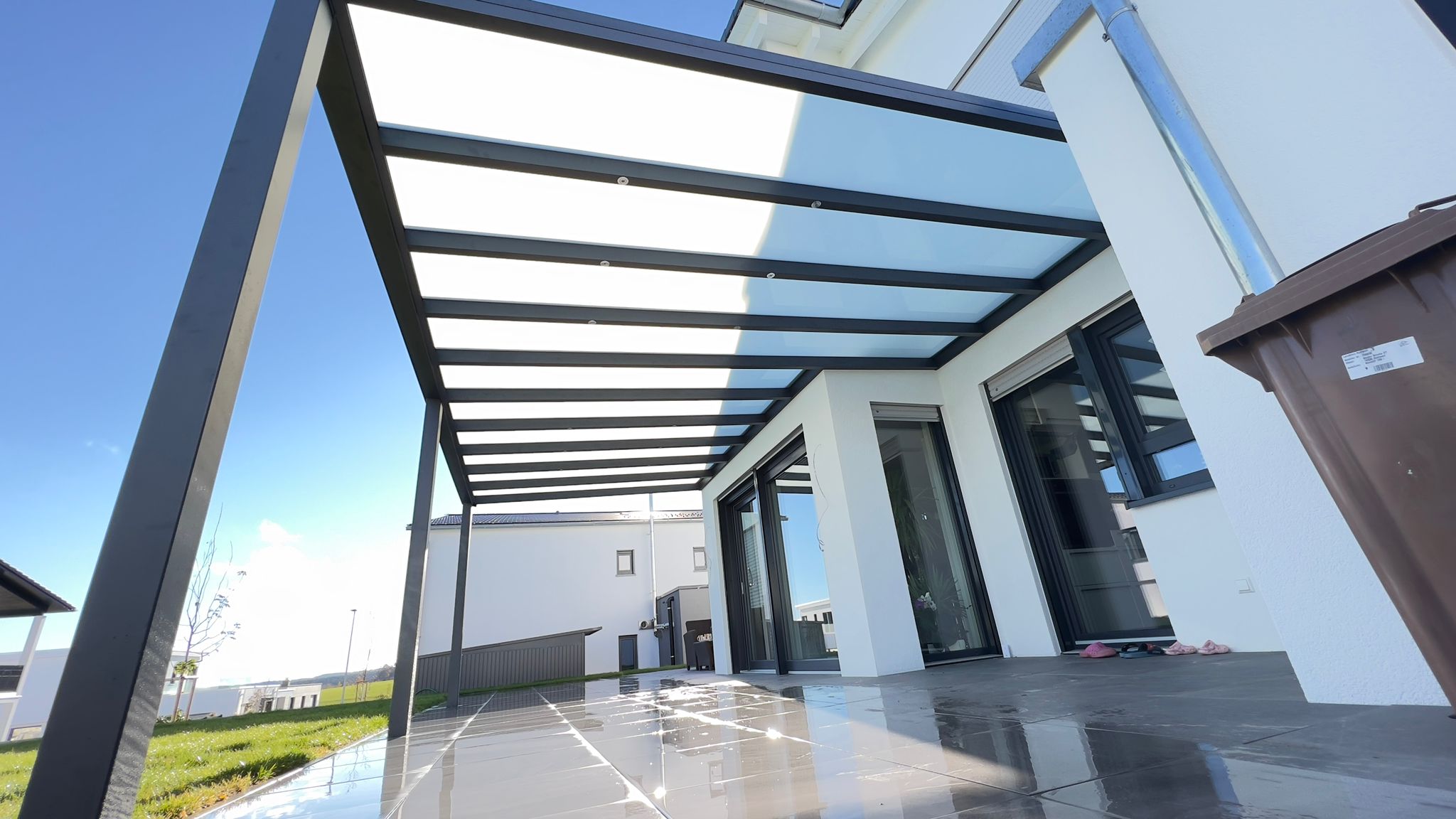 Für ein Einfamilienhaus in Spaichingen haben wir eine moderne Terrassenüberdachung...